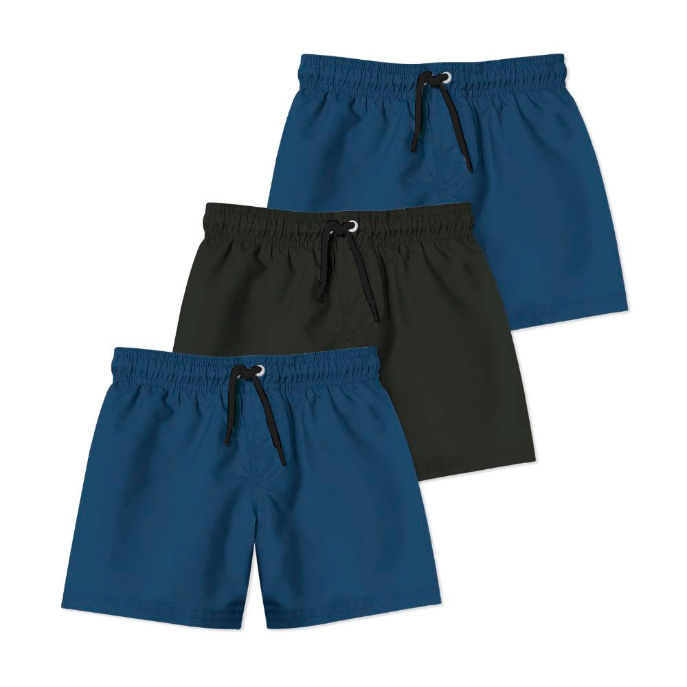 Kit 3 Shorts Masculino Liso Try Basics - 2 Azul e 1 Preto