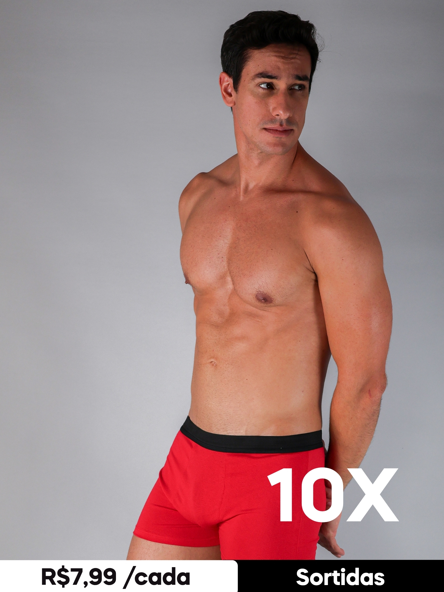 Kit Cueca Boxer Básica de Algodão 10 Peças - Cores